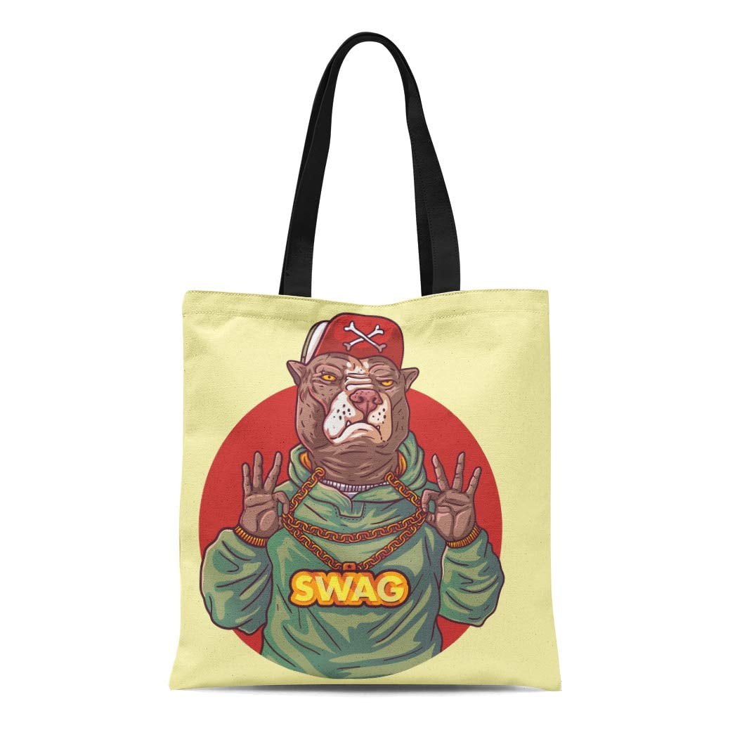 Ashleigh Canvas Tote Bag Staffordshire Terrier Rap Gangster Swag Pitbull Holds Gold Chain Durable Reusable Shopping Shoulder Grocery Bag Walmart Com